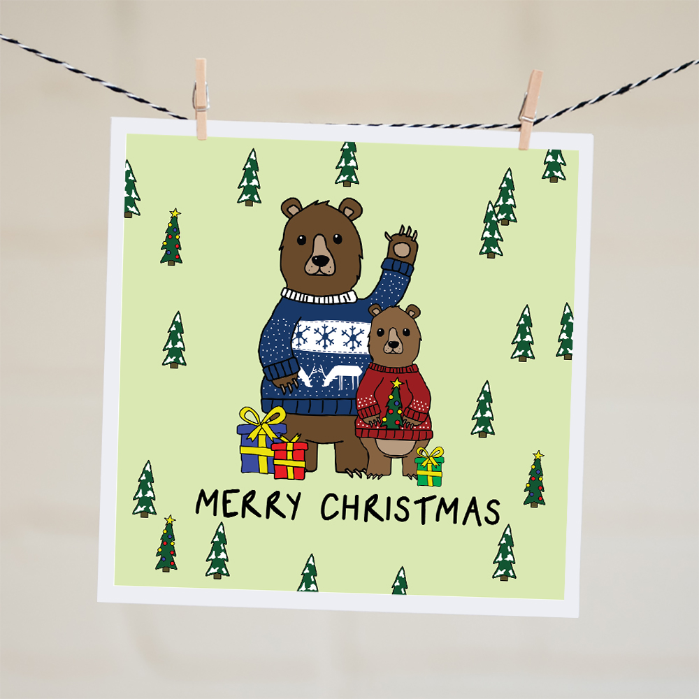 Christmas Card: Bears in Christmas Jumpers